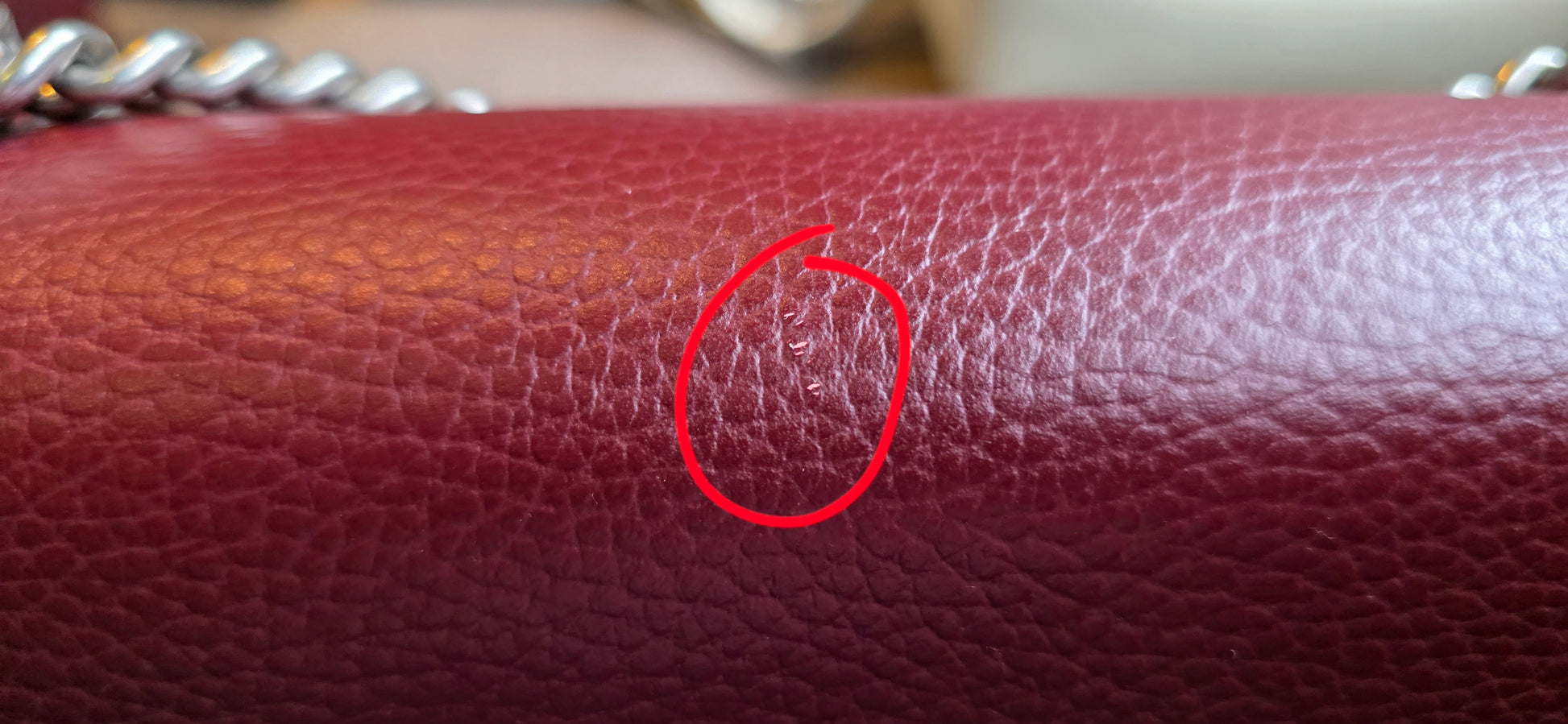 ❤️Exterior: grained/pebbled leather finish, light rubs on corners, a small superficial scratch (circled in photos), other than that exterior is in very good condition