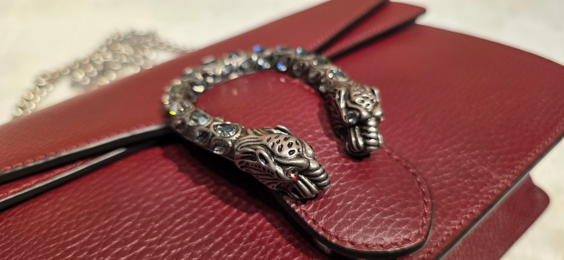 ❤️Hardware: intact crystals on the signature tiger head front closure, light scratches on silver hardware