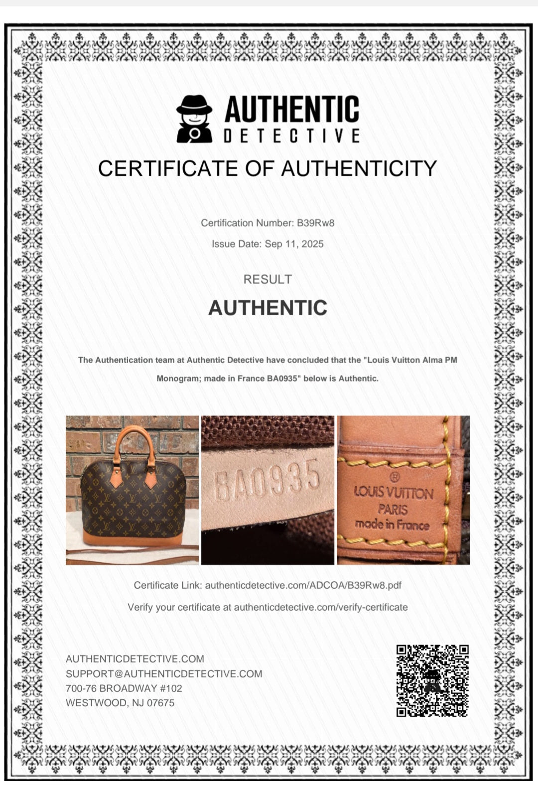 Authentic Louis Vuitton Alma PM Monogram (With Strap)