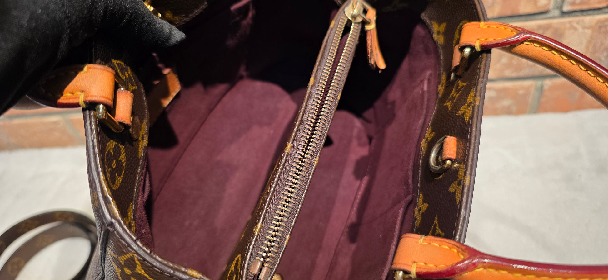 As a pre-owned item, this bag may retain scents from prior use or storage (e.g., perfume, cleaning products, leather care).