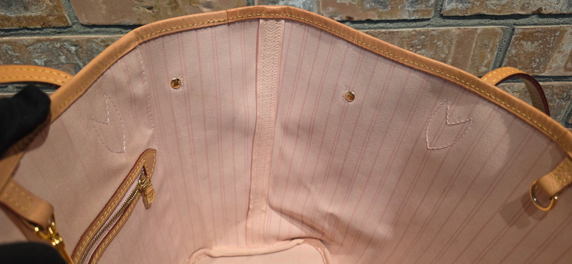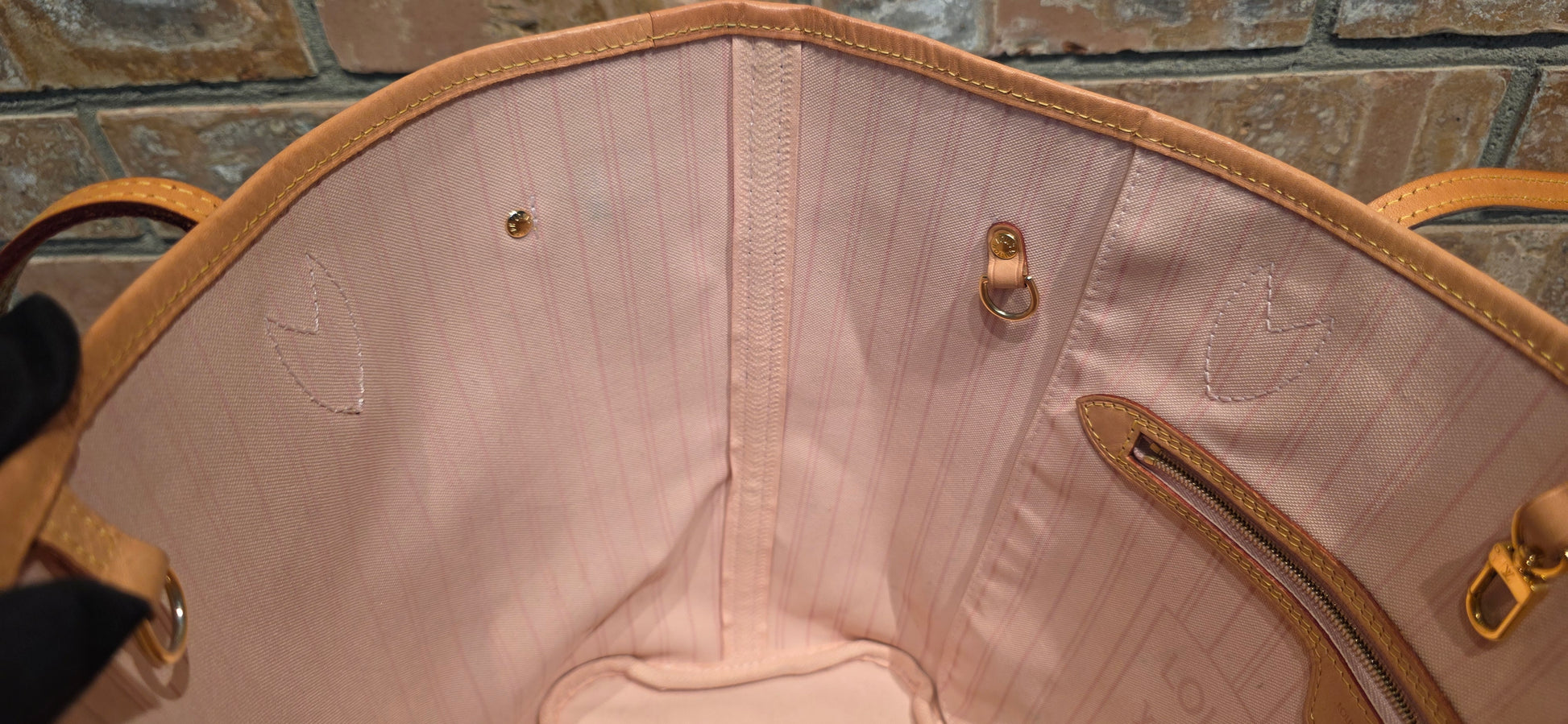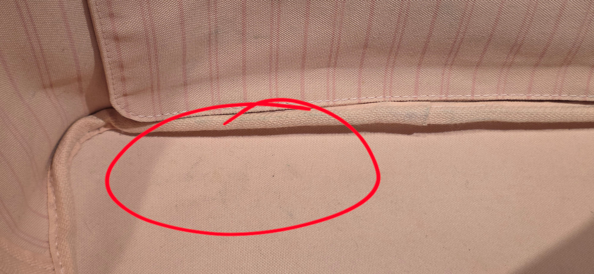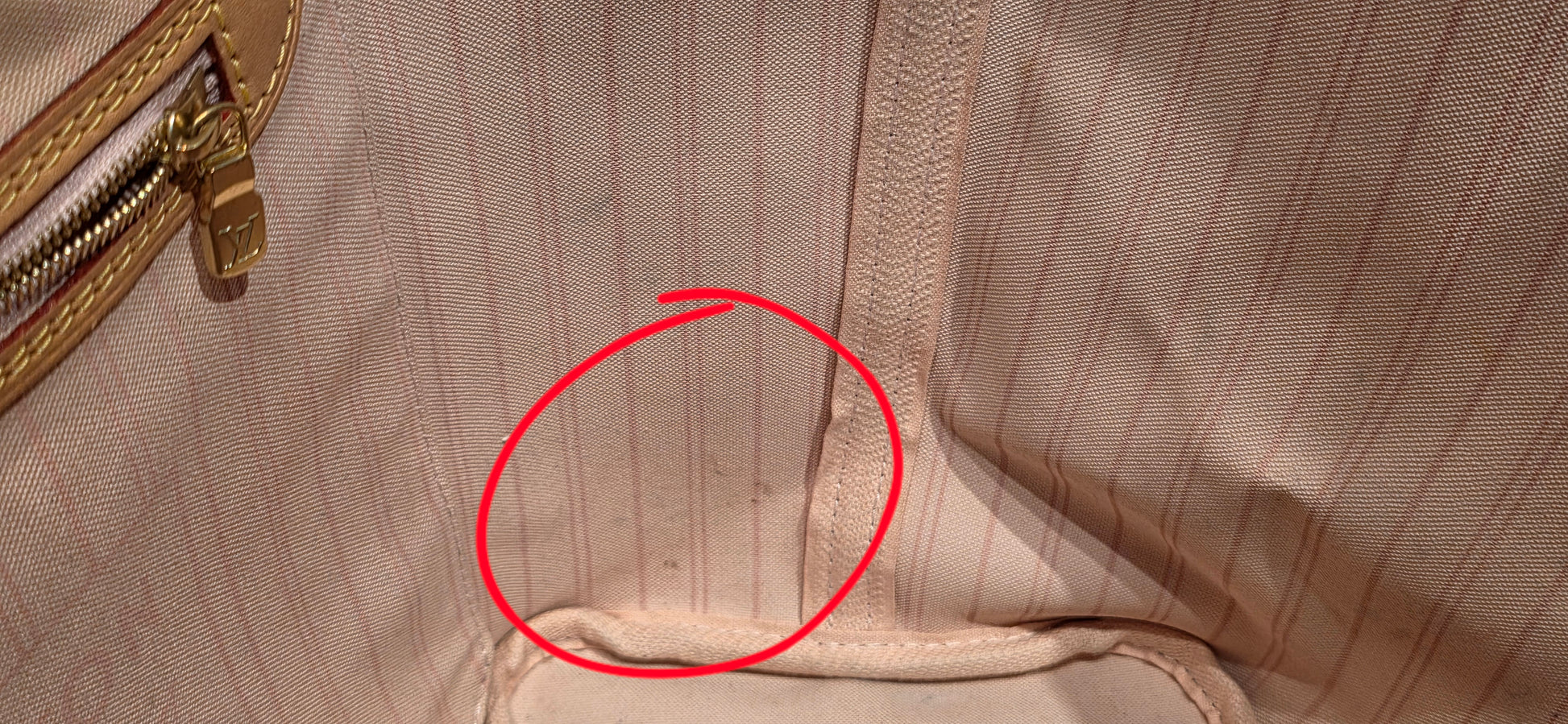 ♥️Interior: stains on main compartment and inside pocket (circled in photos), no foul smell