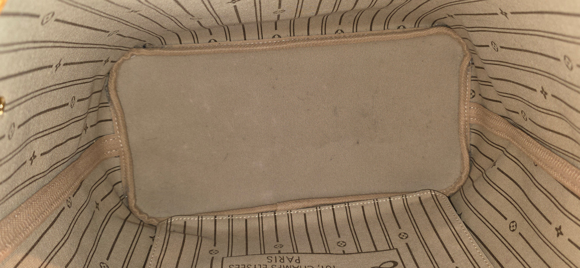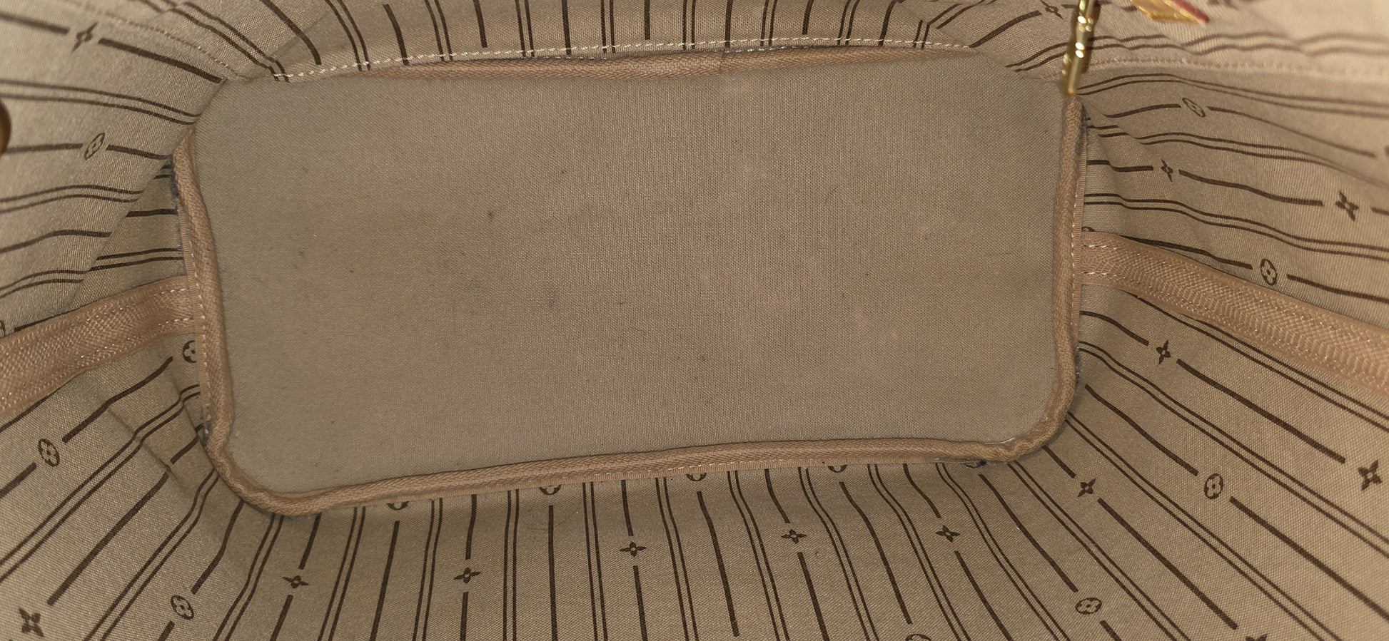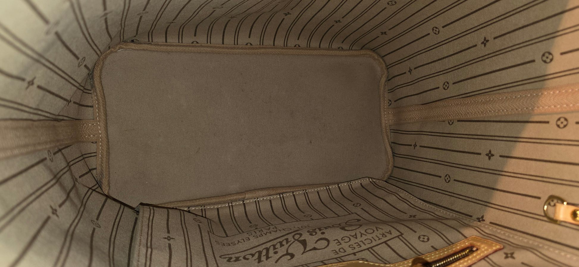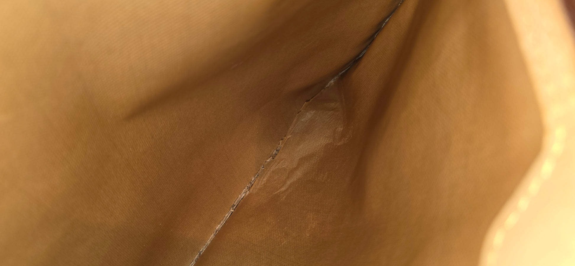 ♥️Interior: with the cursive Articles de Voyage interior from the earlier version of NF). Stains on main compartment, dust on corners, no foul smell, peeling inside the pocket (doesnt affect use)