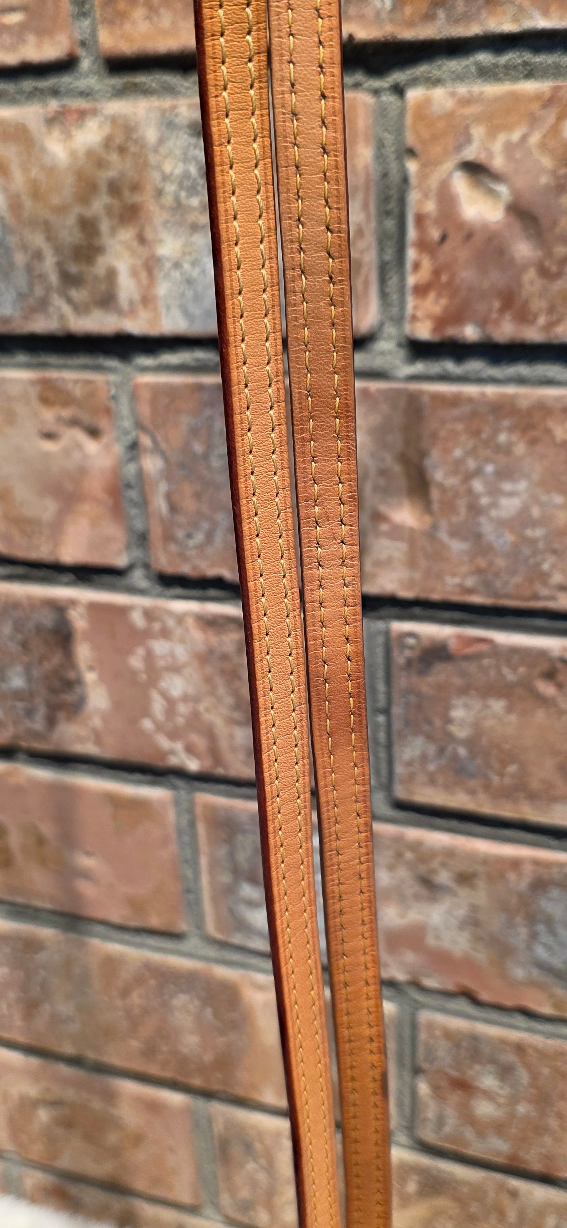 ♥️Hardware: goldtone with light scratches, zipper runs smooth, zipper pull and d-rings are slightly tarnished
