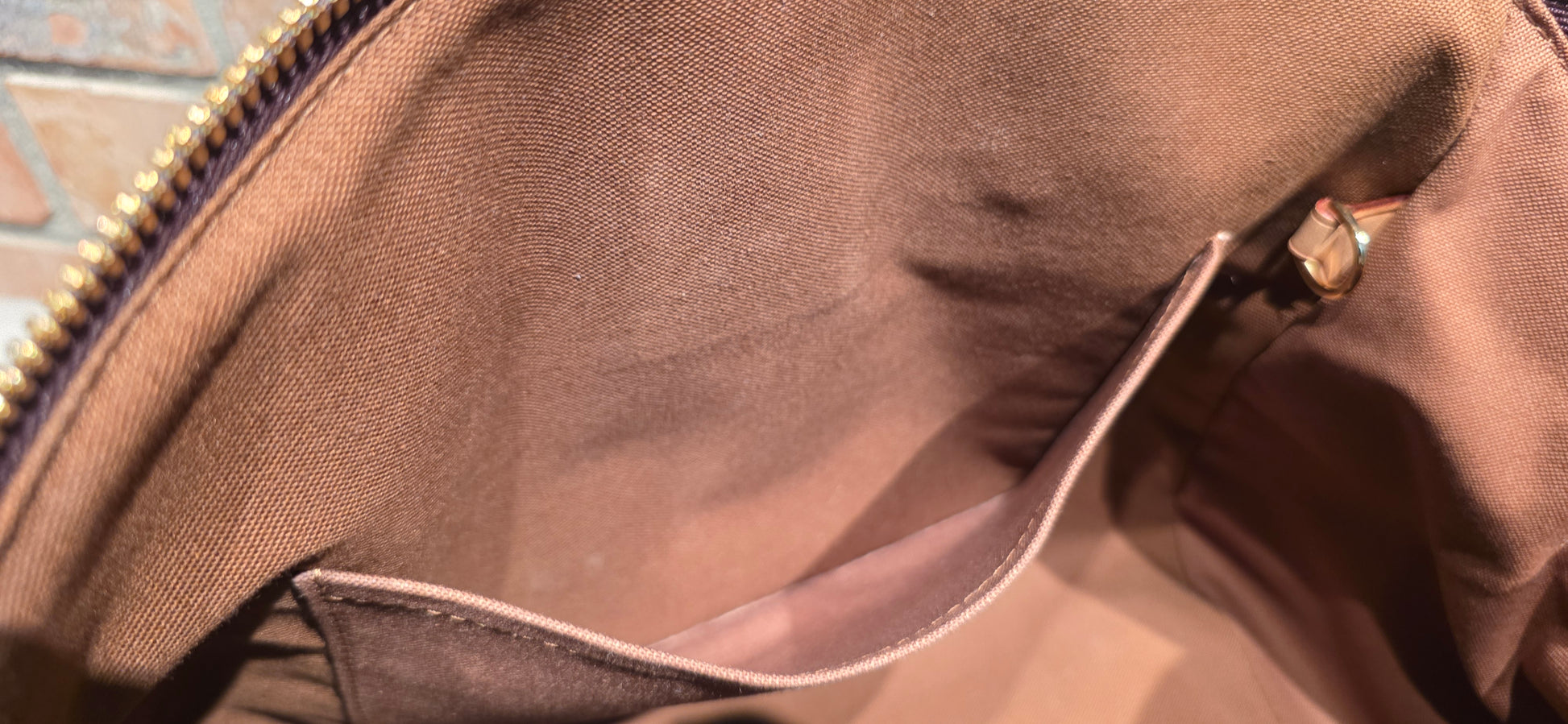 ❤️Hardware: goldtone with scratches, zipper has a tight pull, will need a little care/conditioning or may loosen with regular use.